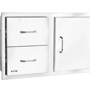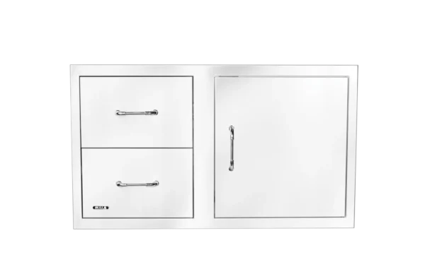 Enhance your outdoor kitchen with our 80 cm Reversible Door/Drawer Combo, showcasing our innovative Reveal design. This unit, made from premium 304 stainless steel with a sturdy 16-gauge build, combines durability and style. It features fully enclosed, soft-closing drawer components and double-lined doors, perfect for storing grilling essentials and cleaning supplies. The revolutionary design offers the flexibility to reverse the unit quickly. You can configure the door and drawers on either the right or left side, ensuring seamless integration into your outdoor kitchen layout. This essential addition to your outdoor cooking space combines functionality and innovative design.