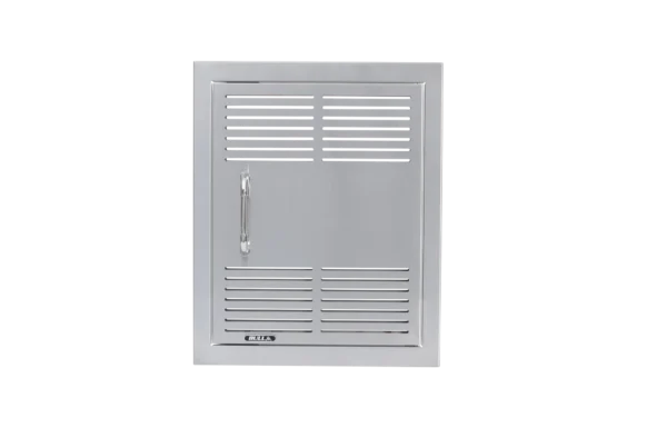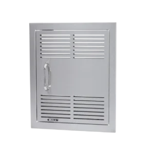 Upgrade your outdoor kitchen with the dual-line stainless steel vented vertical door, now featuring a Reveal design. Crafted from sturdy 304 Grade 16 Gauge Stainless Steel, this door offers exceptional durability and adds a contemporary touch to your space. Its double-lined design stands out, providing secure storage for propane tanks and gas lines, and includes a safety feature with proper venting for your outdoor kitchen setup. This stylish and practical addition enhances your grilling experience while making the Reveal design a standout feature in your outdoor culinary area.